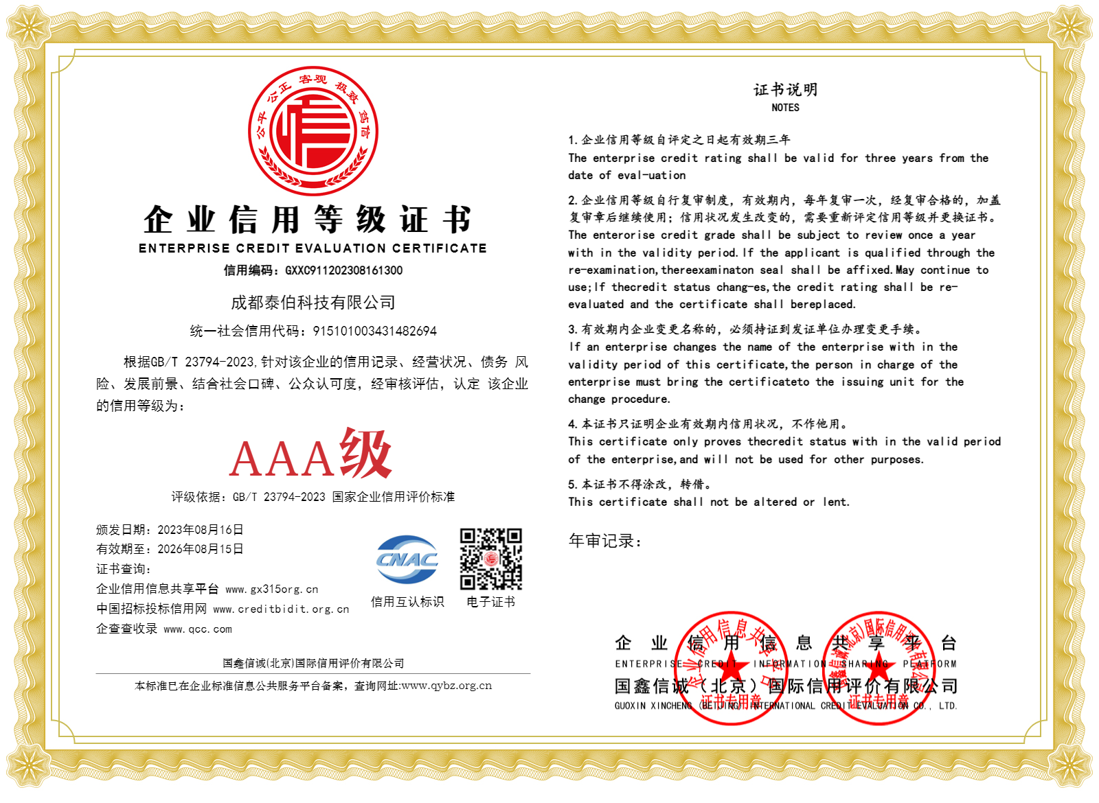 喜讯丨热烈祝贺我公司获得AAA级企业信用等级认证